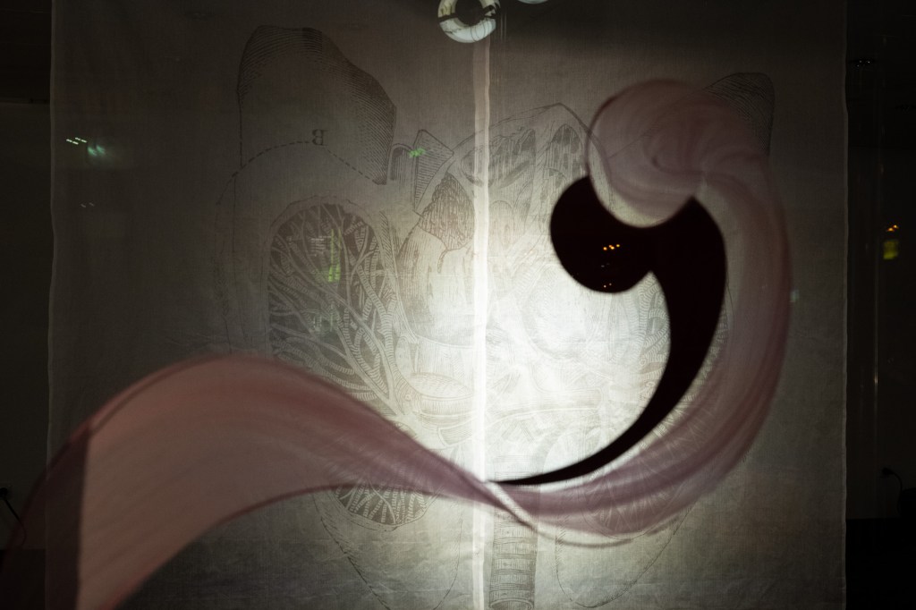 Don Quixote: Aisling Hayes and Lena Appel recite text and sing. anu koetter and Joana Ferraz demonstrate a transformation. Carla Loose masks its bodies. Maria Moritz paints an utopia. Nikki Buzzi play psychoacoustic phenomena. Leonie Emeka curates. The Don Quixotes taken up in GIANTS by the authors Miguel de Cervantes, Kathy Acker and Monique Wittig, fight against windmills: Imperialism, patriarchy or a mad reality. Simultaneously, they are subject to the lunacy of social norms, the impenetrability of fantasy, fiction and fact. In this iteration, Don Quixote and Panza are romantically involved, though their journey demands leaving much behind. GIANTS unfolds as a shadow play, exploring the interplay of inner and outer realms, symbolisms, the human psyche, and ephemerality. Ultimately, Panza may be just a figment of imagination, but one that enables Don Quixote to carry a fragment of fantasy into the realm of reality.